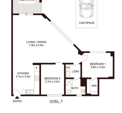 - Internal laundry with clothes dryer