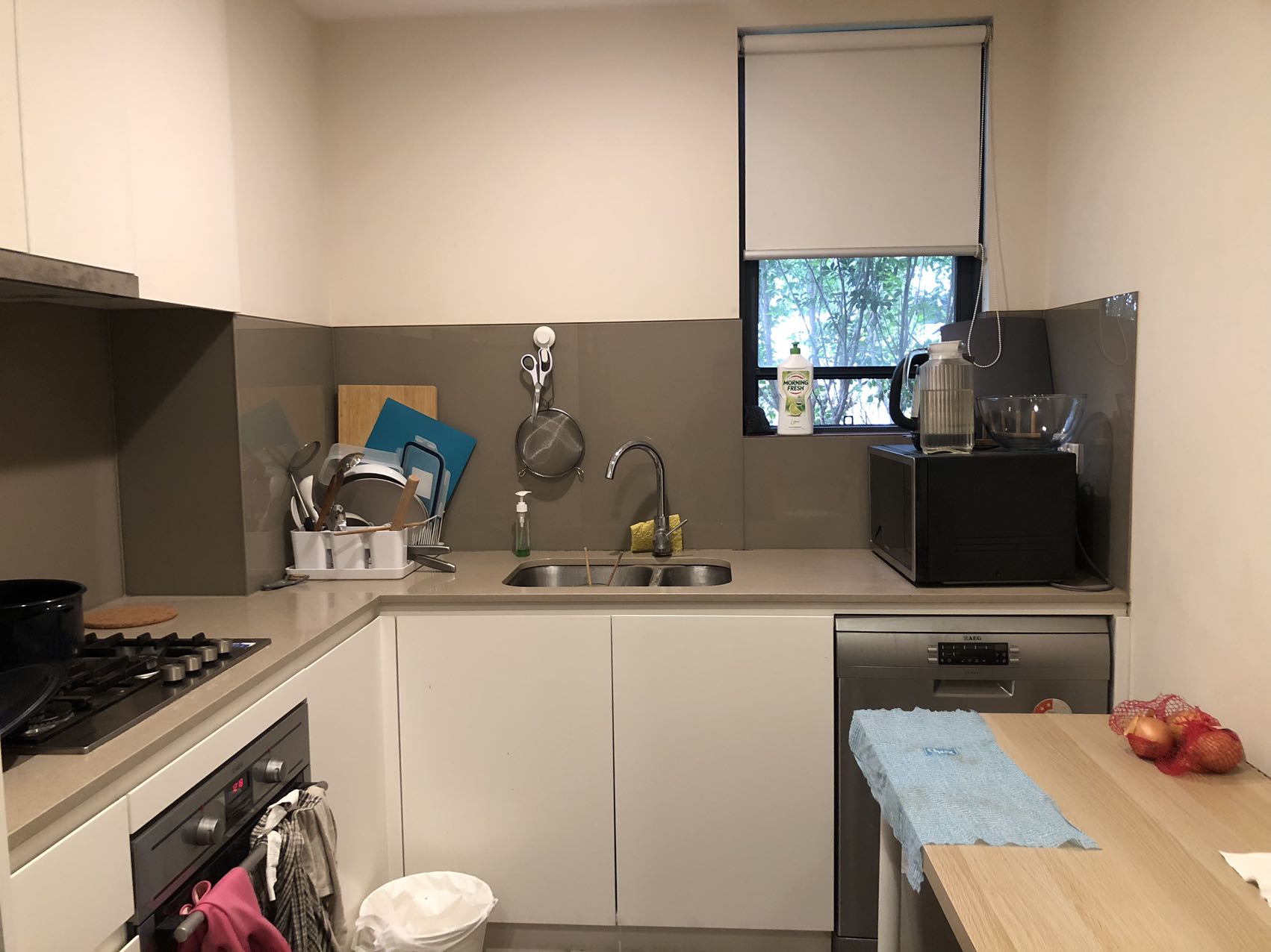 • Gourmet kitchen with stone benchtop, stainless steel gas appliances and dishwasher