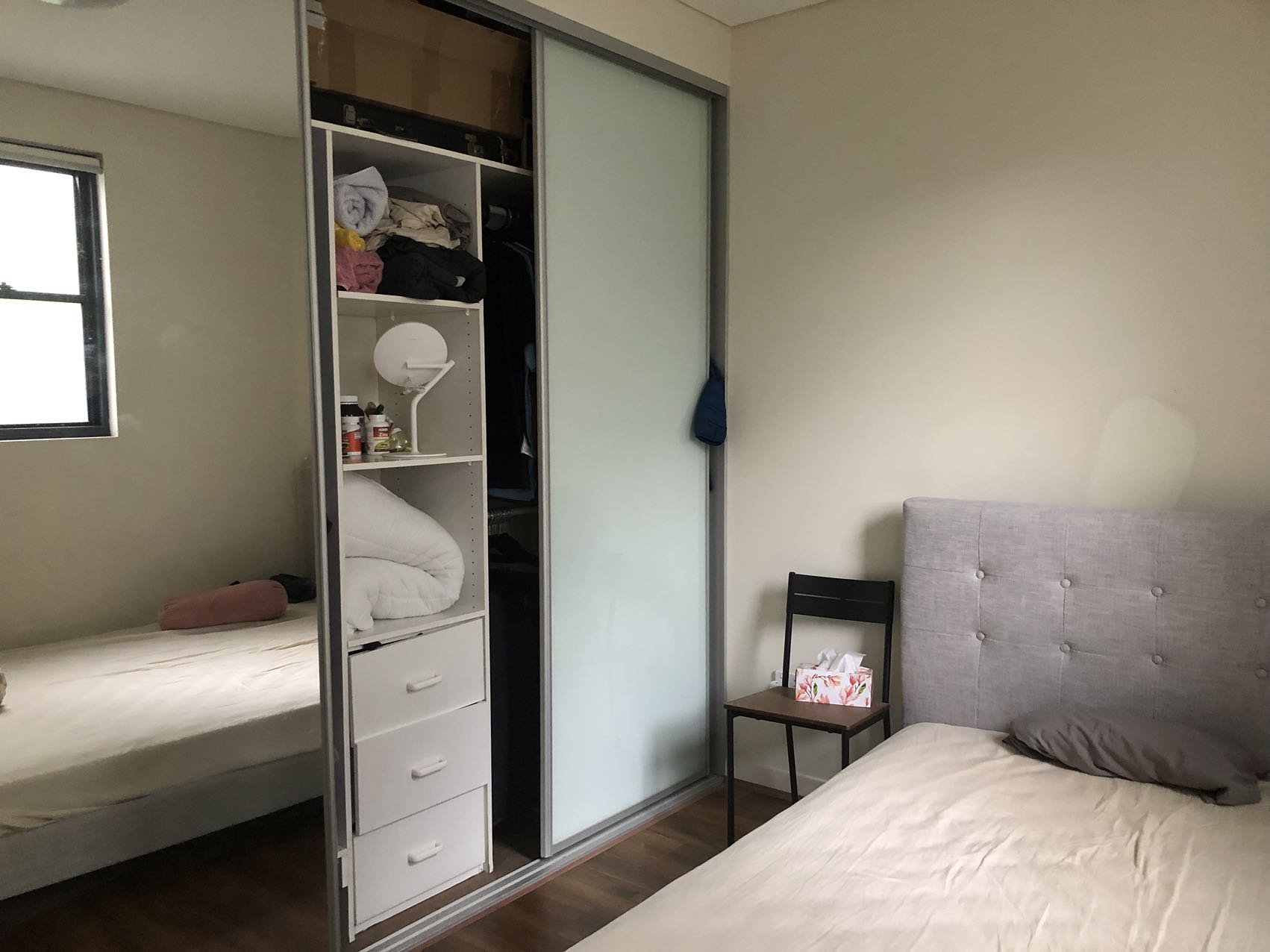 • Spacious bedroom with a large built-in wardrobe
